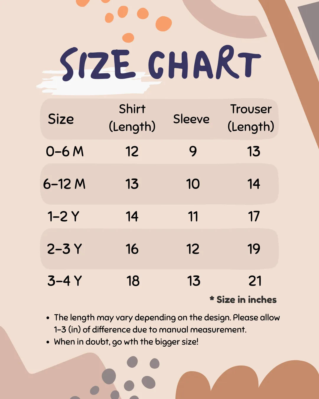 | Size | Shirt | Sleeve | Trouser |